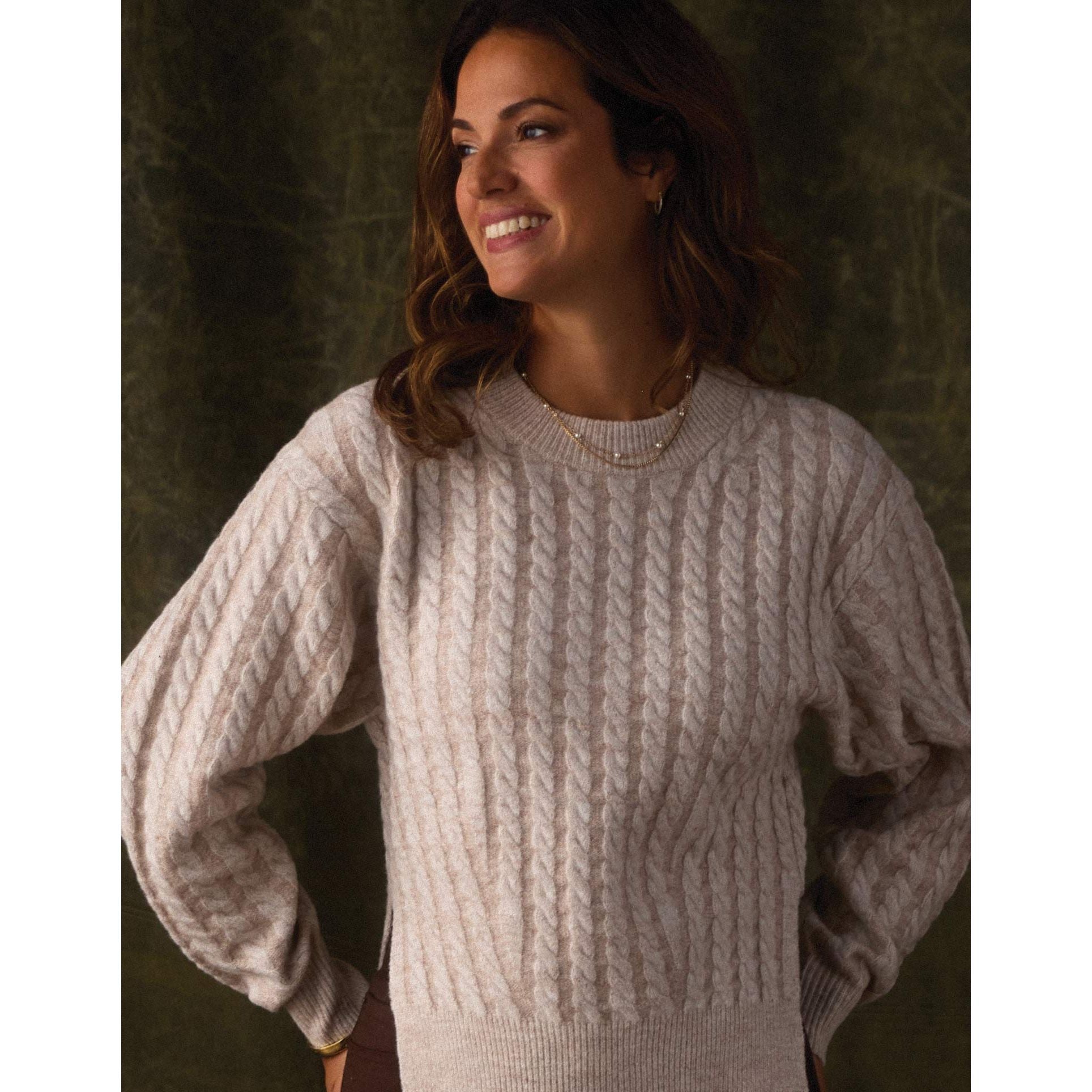 The Cable Knit Split Side Pullover is cozy, comfy, and just the right amount of textured. It’s got a soft, slightly fuzzy feel with a two-tone cable knit. With dropped shoulders, a relaxed hi-low hem, and side slits, it’s the kind of sweater you’ll want to throw on all season long. Finished with ribbed edges.
