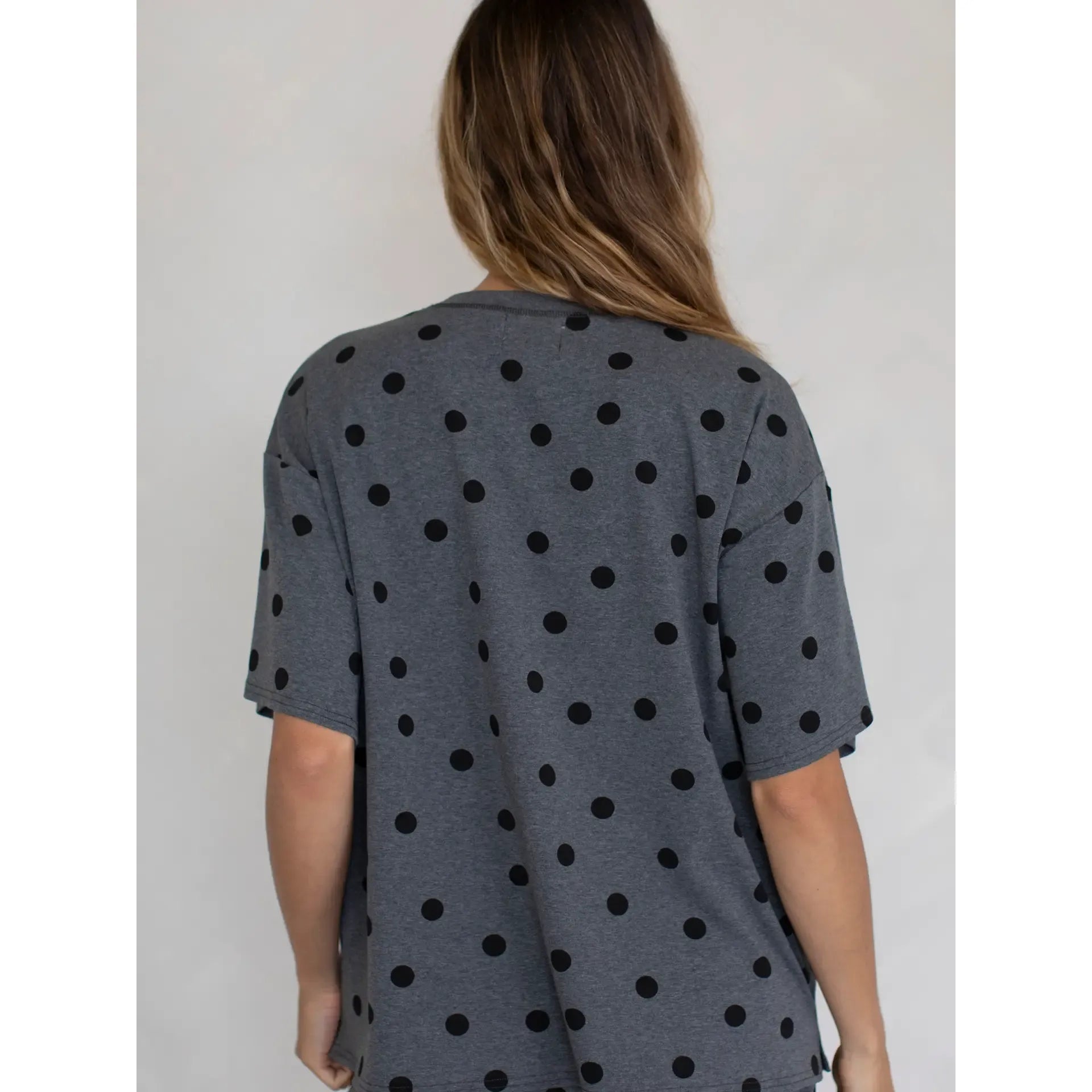 Chic, playful, and comfortable. With a soft cotton blend and all-over polka dots, this tee brings effortless style to your casual wardrobe. Perfect for layering or wearing on its own.