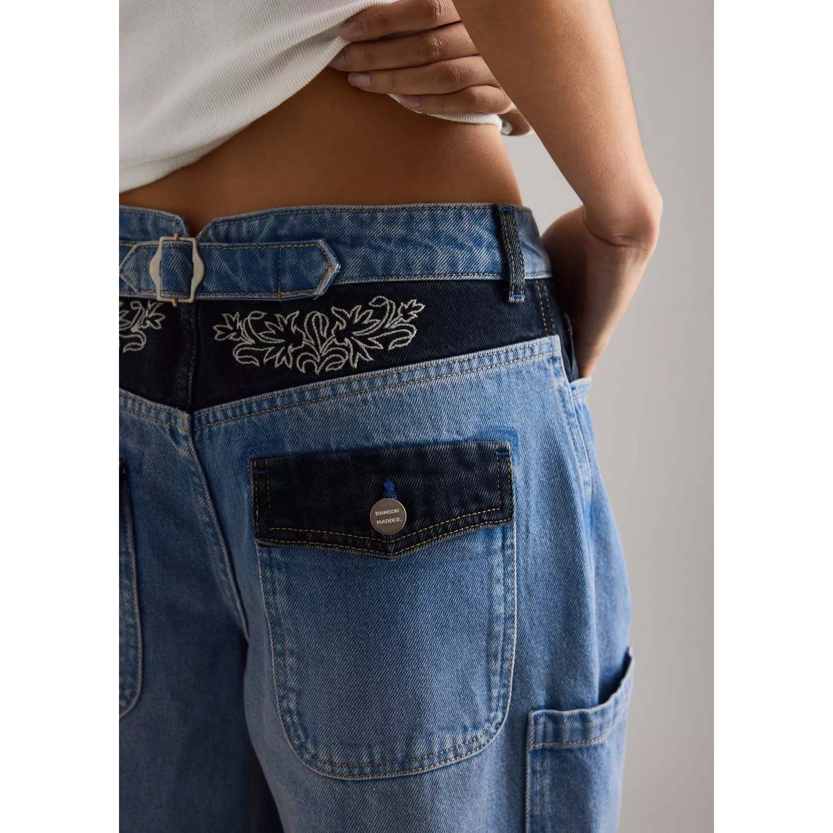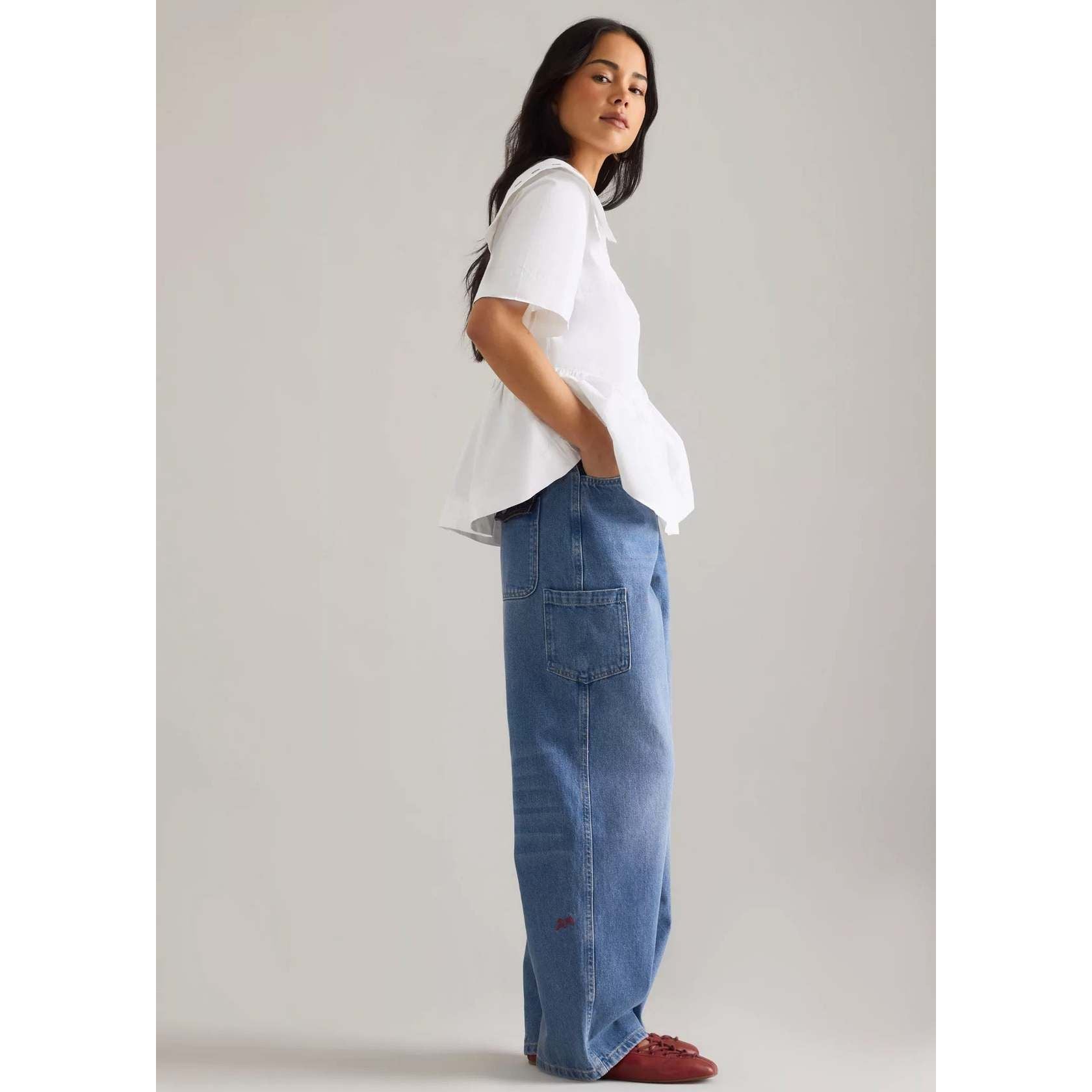 The Drew Cargo Jeans by DAMSON MADDER return with a fresh twist, now in the perfect everyday blue and featuring enhanced details for an improved fit. An adjustable waist cinch tab ensures a tailored feel, while cargo pockets and a hammer loop add functional flair. Made from 100% organic cotton and designed to fit true to size, they offer a stylish blend of edge and practicality. Model is a UK 8, 5'10, and is wearing a UK 10 for an oversized fit.
