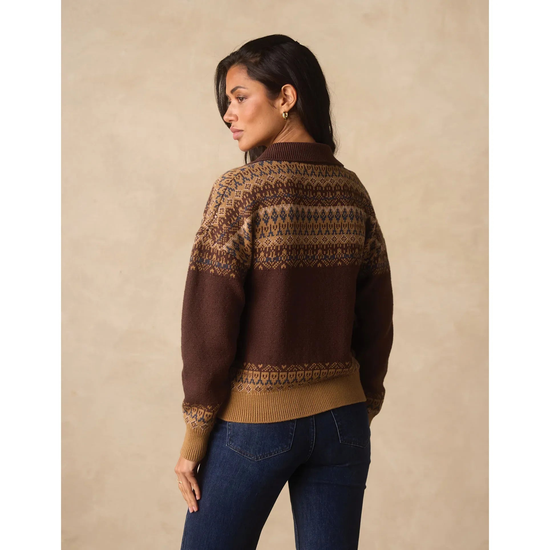 The Fair Isle Polo Sweater is a cozy nod to heritage style with an easy, oversized fit that hits at mid-rise. Made from 100% cotton in a chunky 5 gauge knit, it features a classic polo collar and open front placket. The dropped shoulders and Fair Isle pattern add a nostalgic feel. Finished with ribbed hem and cuffs for a cozy fit.