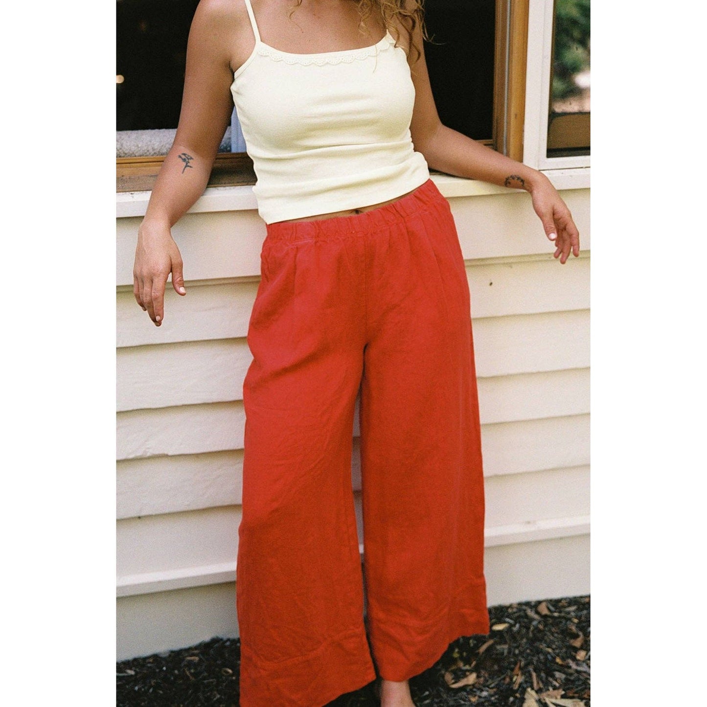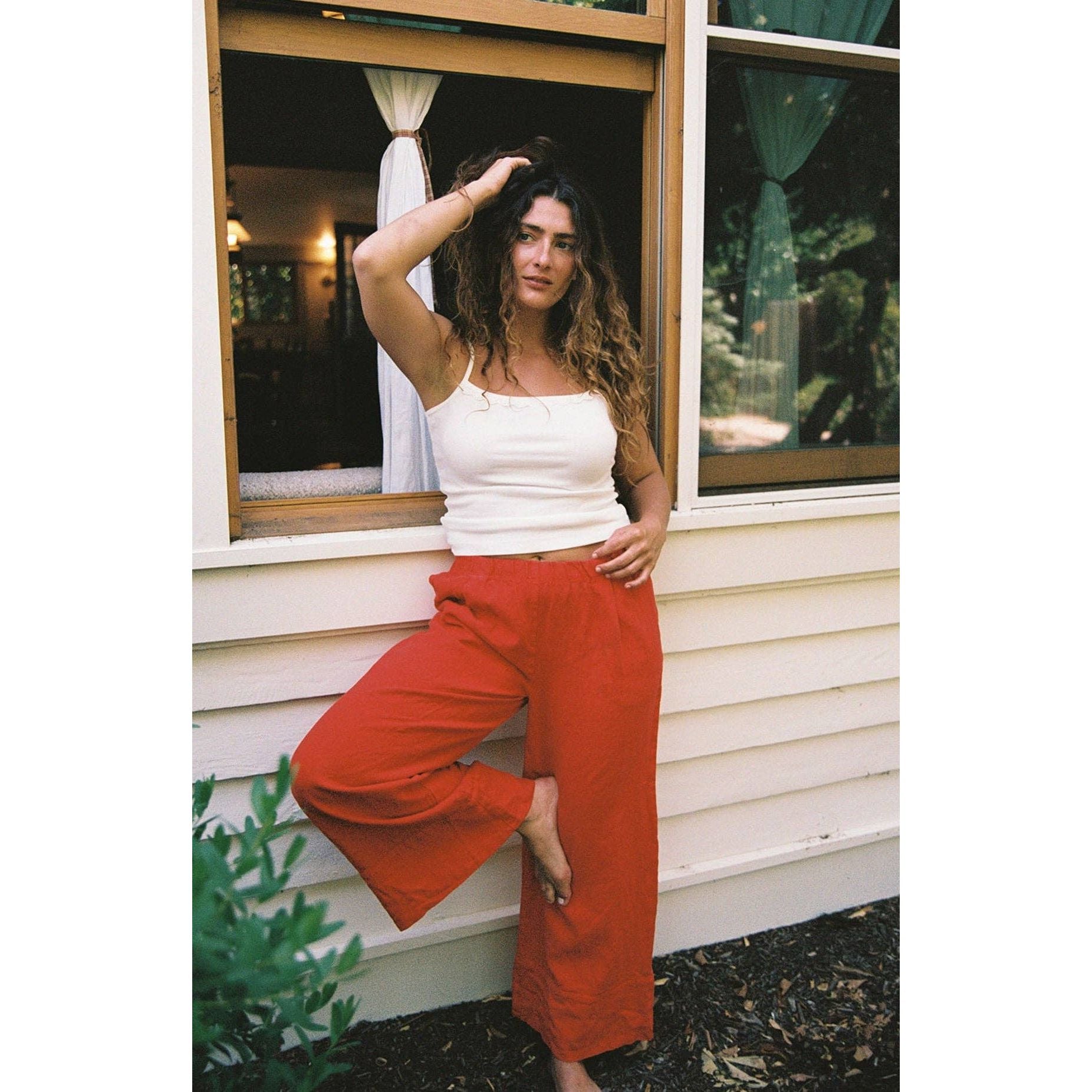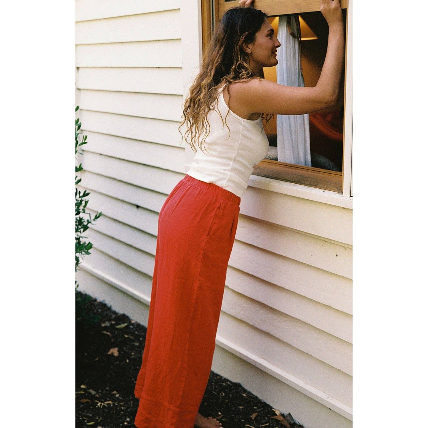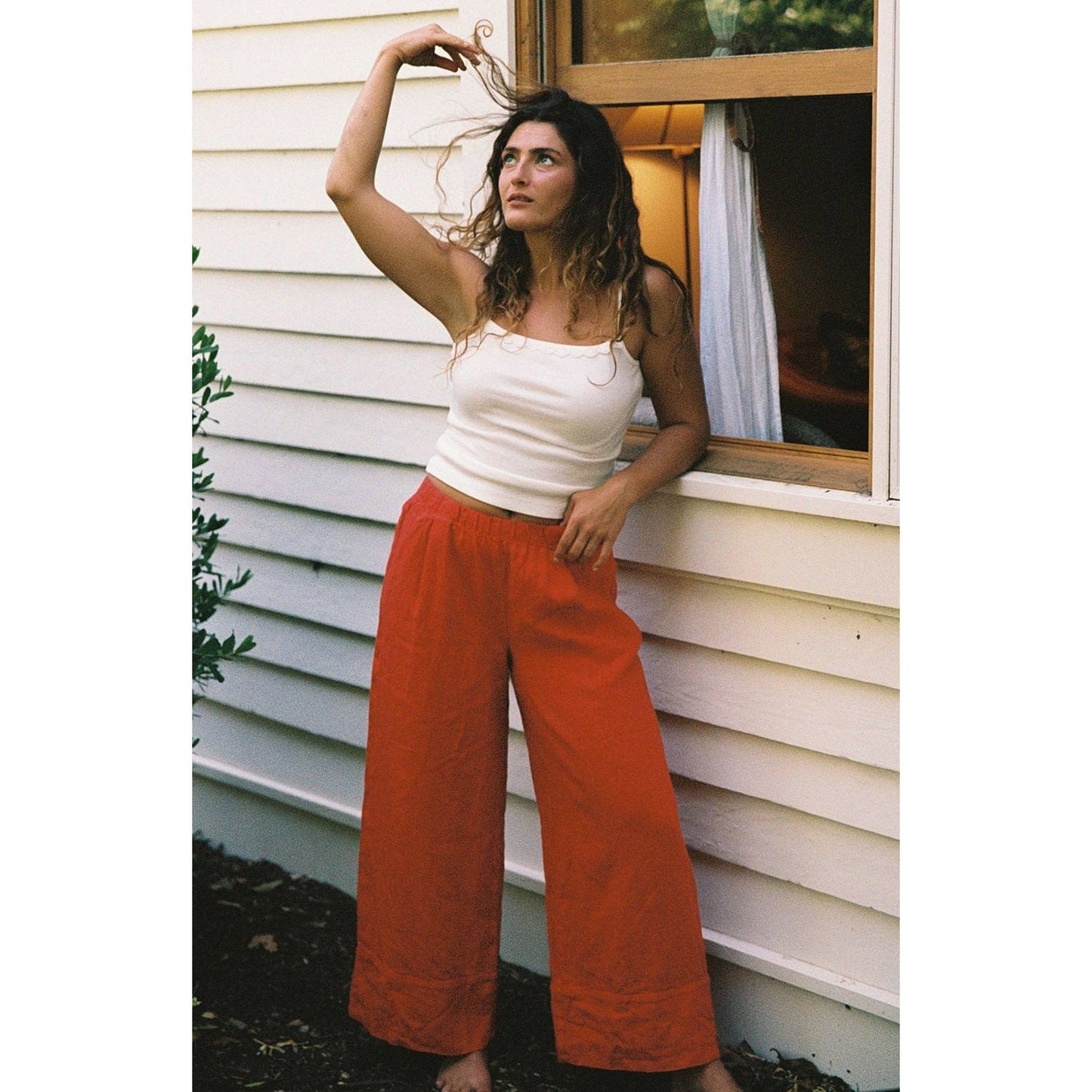 A vintage inspired camisole finished with sweet cotton lace. Made with an organic rib knit locally in Los Angeles. Approx ~19" in length.