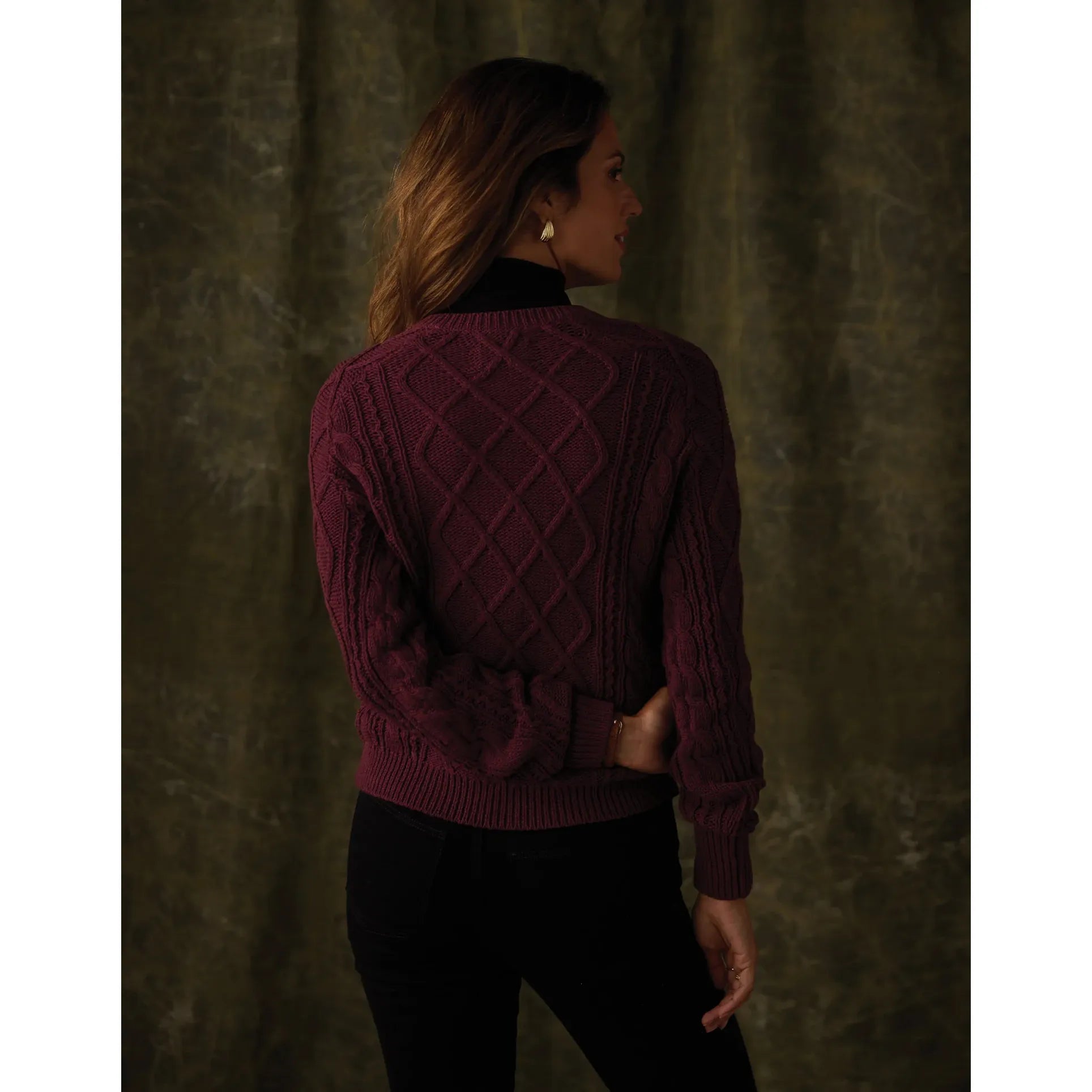 Josefine Cableknit Henley in Port Wine