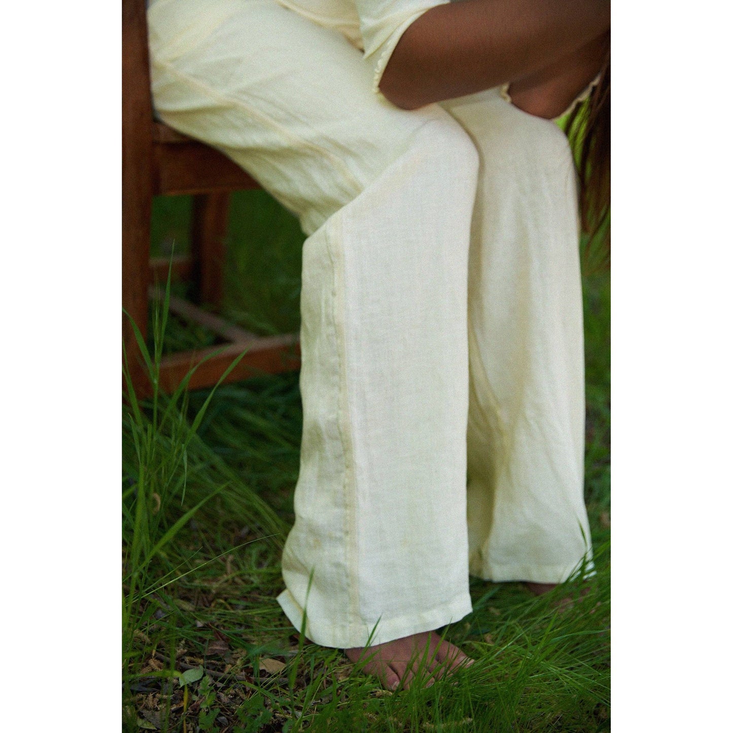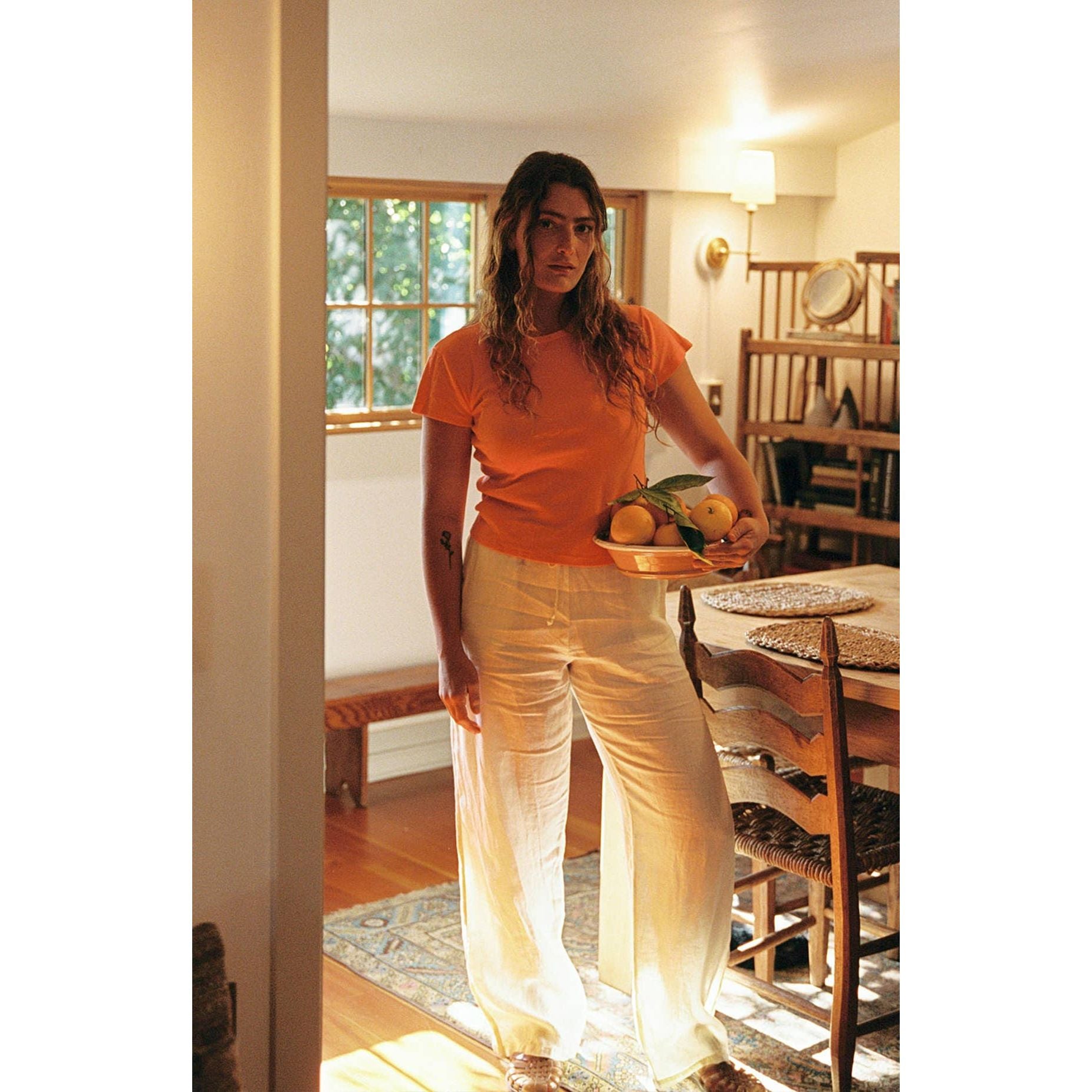Sporty yet polished, these linen track pants feature a straight leg fit with a minimal drawstring waistband accentuated by a single racing stripe. Inseam is 31".