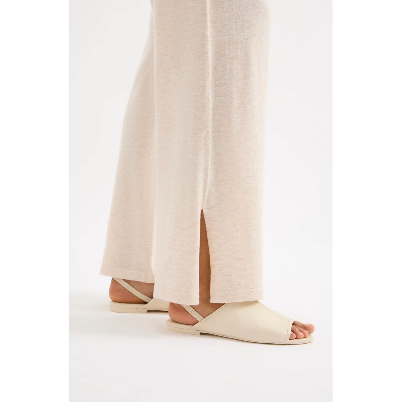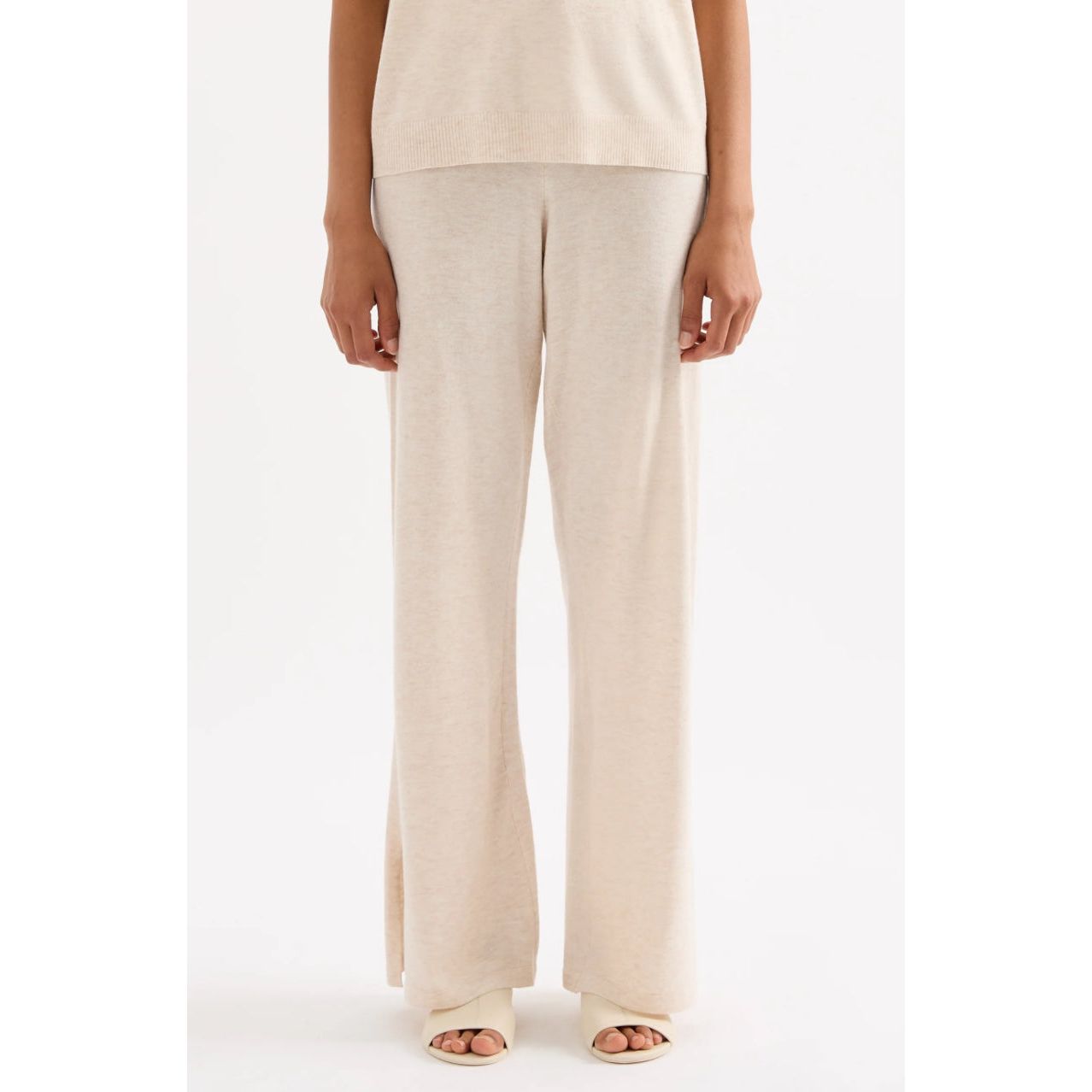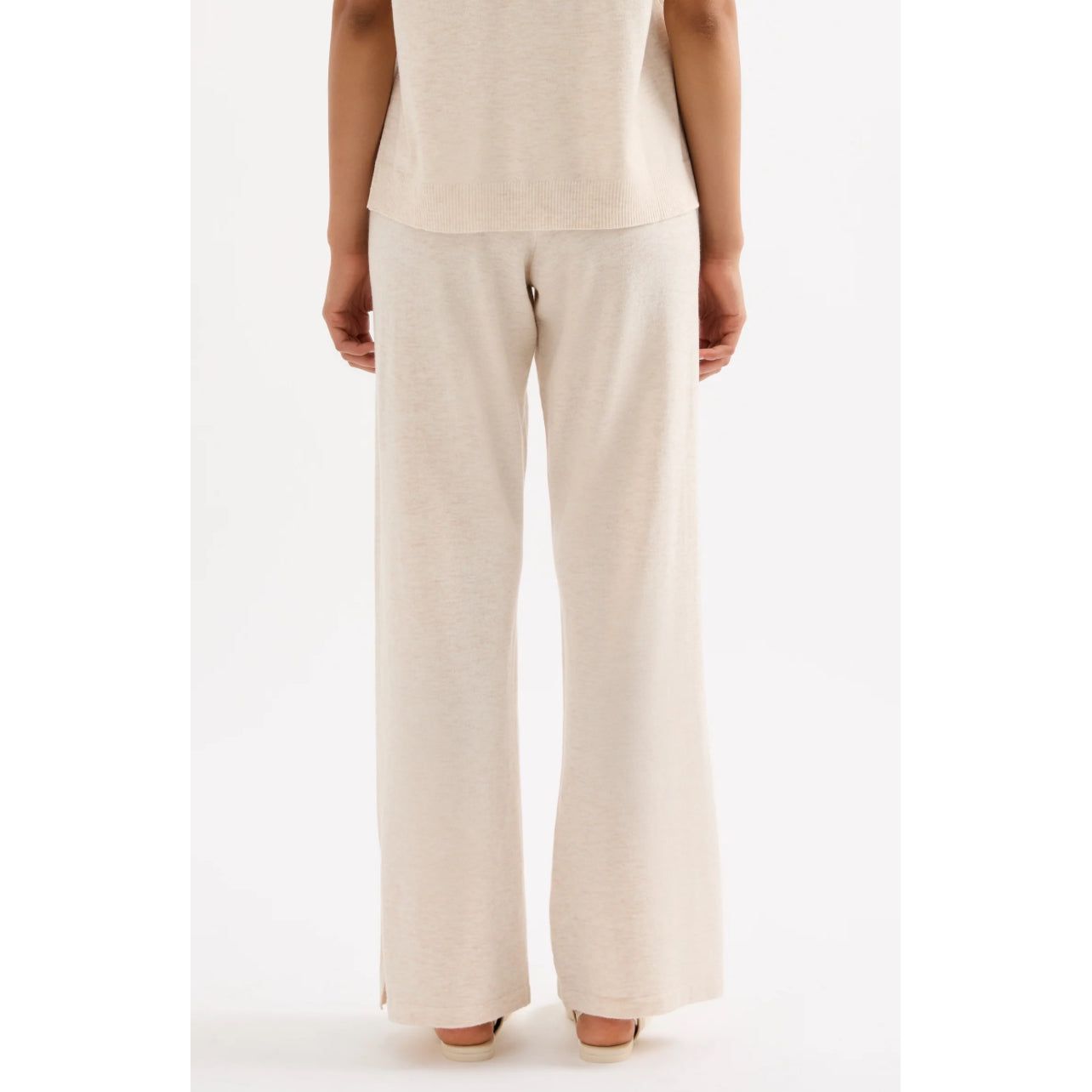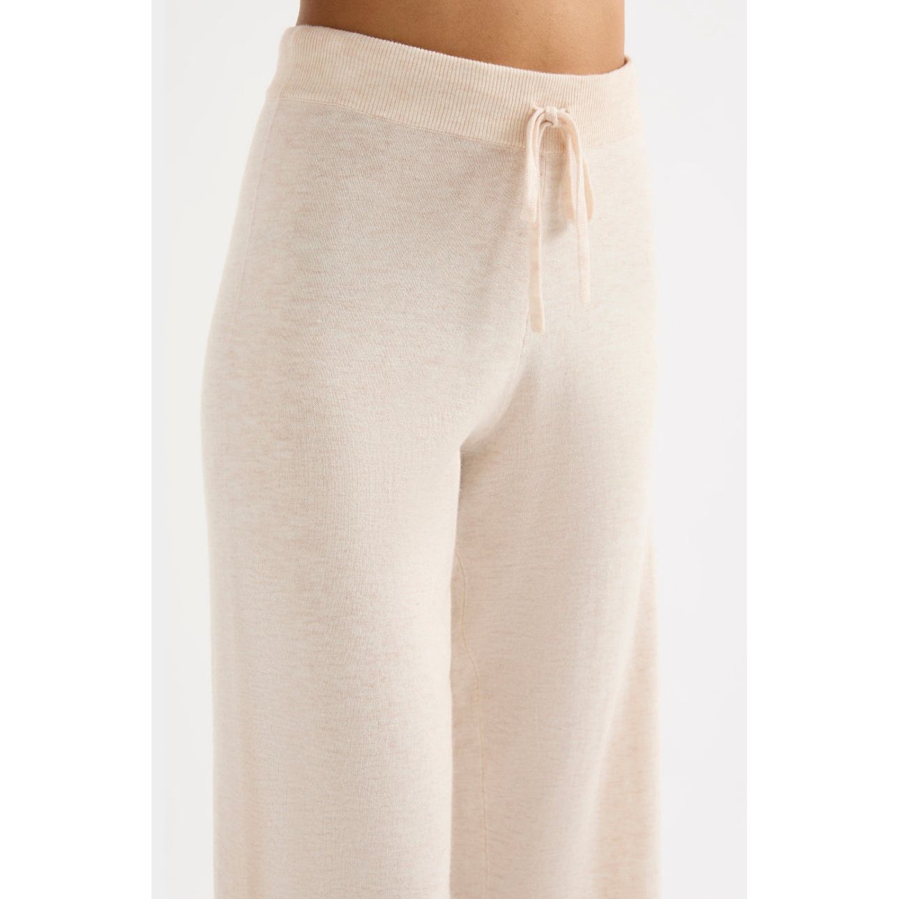 The Rae Knit Pant is made from a lightweight yarn with a subtle marle and soft handfeel. The silhouette is a relaxed wide leg, full length pant. Features include a soft elasticated waistband with drawcord.