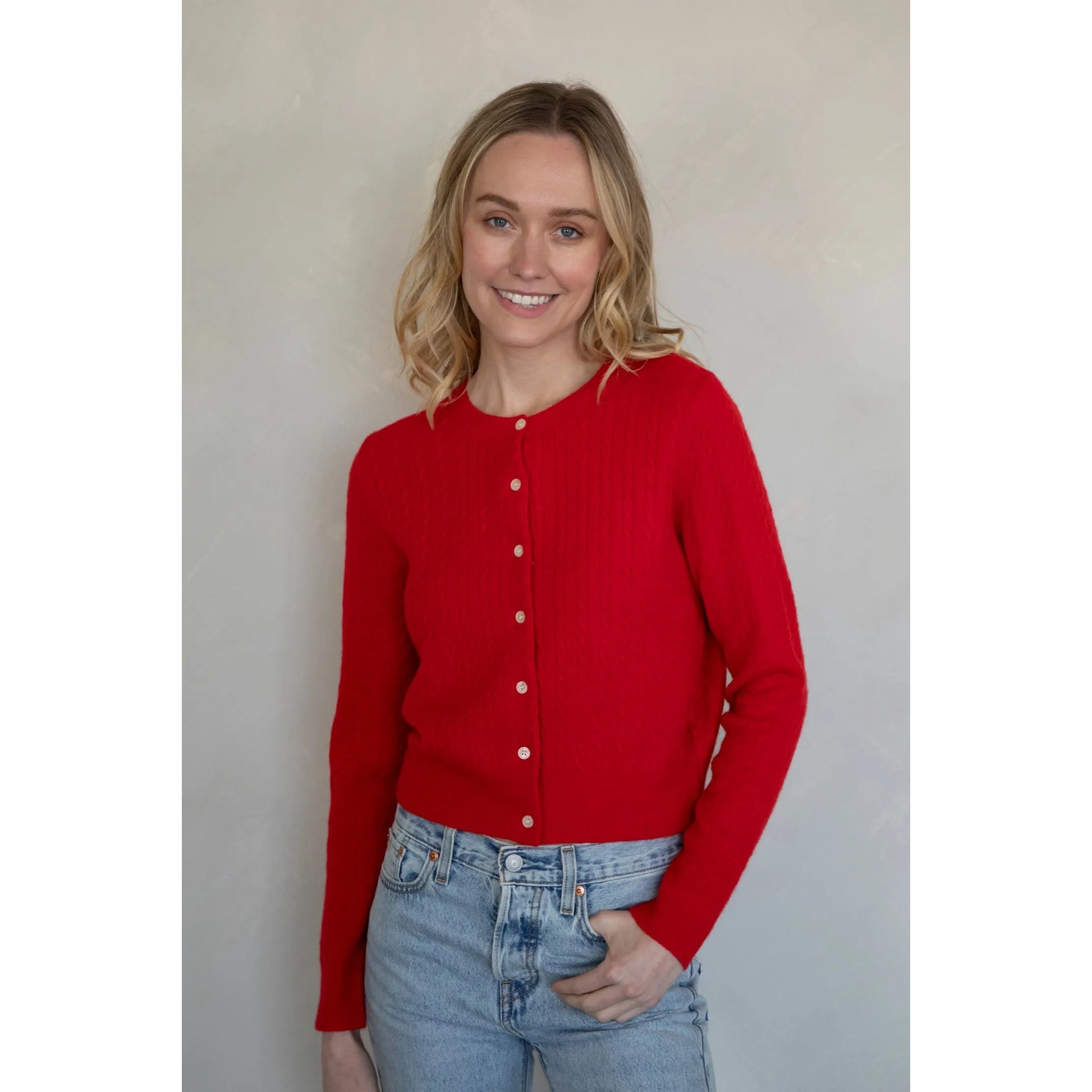Wrap yourself in cozy charm with the Selena Cardigan, a playful red cable knit perfect for brightening any outfit. Its soft texture and vibrant hue make it an irresistible layer for chilly days, adding warmth and a pop of fun to your wardrobe. Whether you're out for a casual stroll or relaxing at home, this cardigan brings comfort and cheer in every stitch.