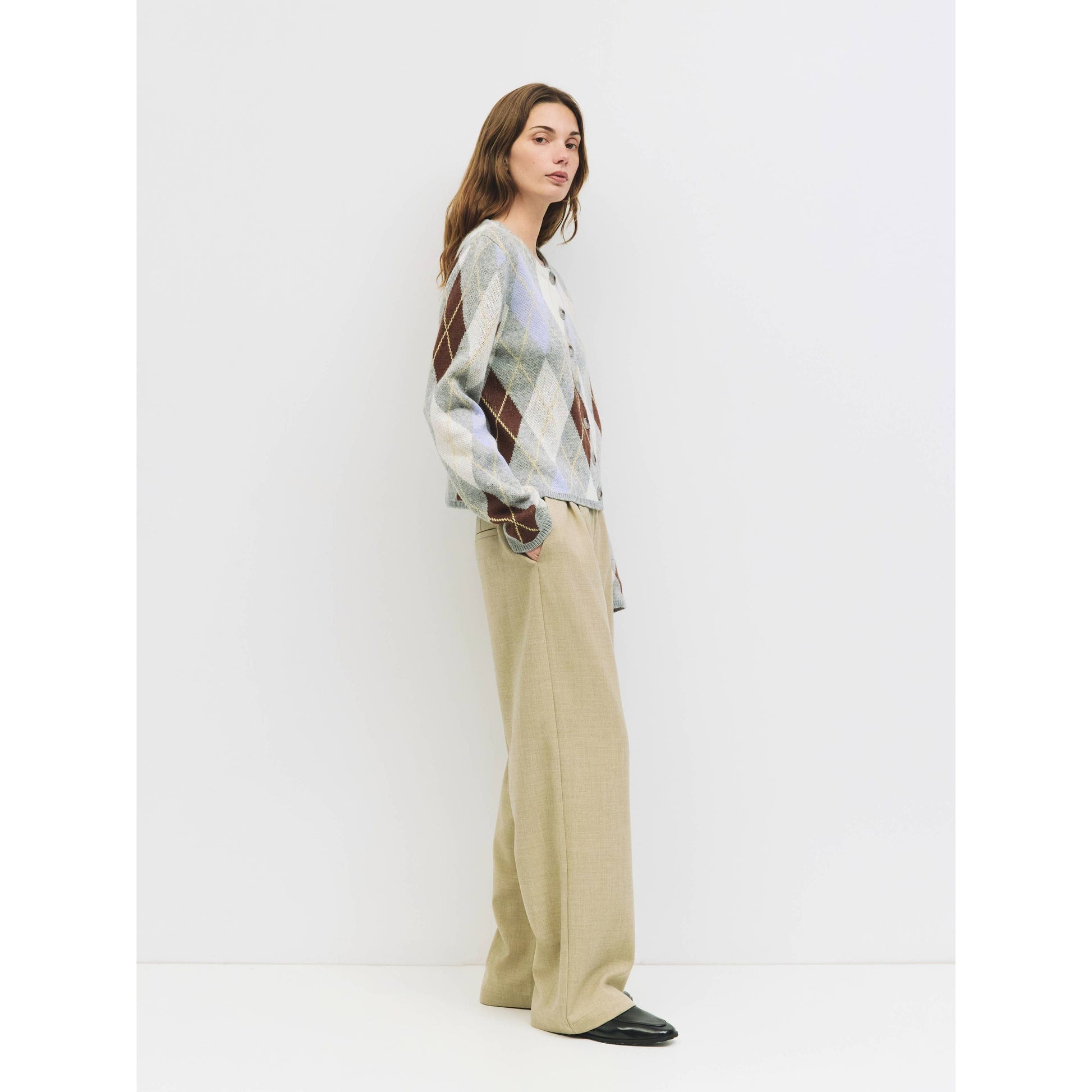 The Reagan Cardigan is a relaxed-fit knit featuring a classic argyle design. It has a crewneck, long sleeves, and a front button closure. Made from midweight knit, it’s a timeless layering piece.