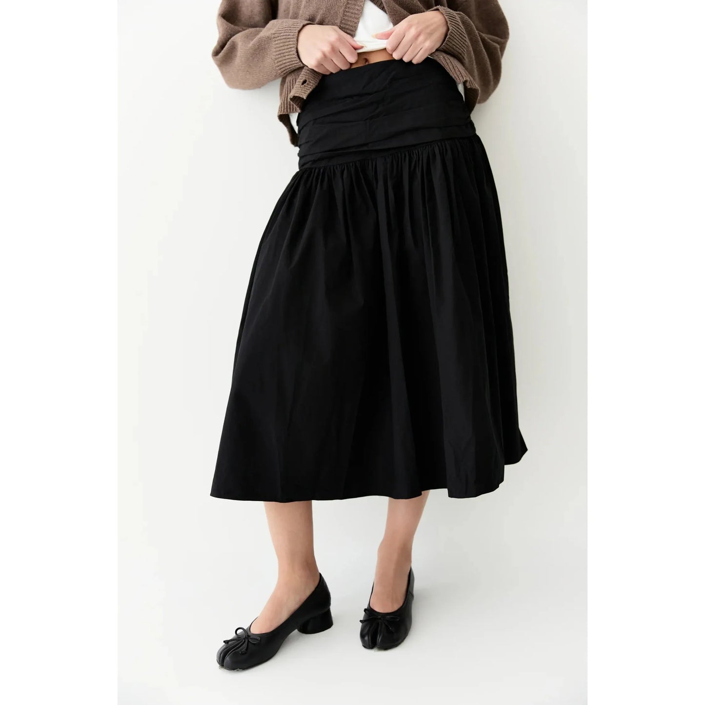 The Mariana Skirt is an elevated midi skirt with wrap detailing at the waistline. It features a full, flowing design and an invisible back zipper for a seamless finish. From casual day outings to formal evening events, this skirt is a versatile addition to any wardrobe.