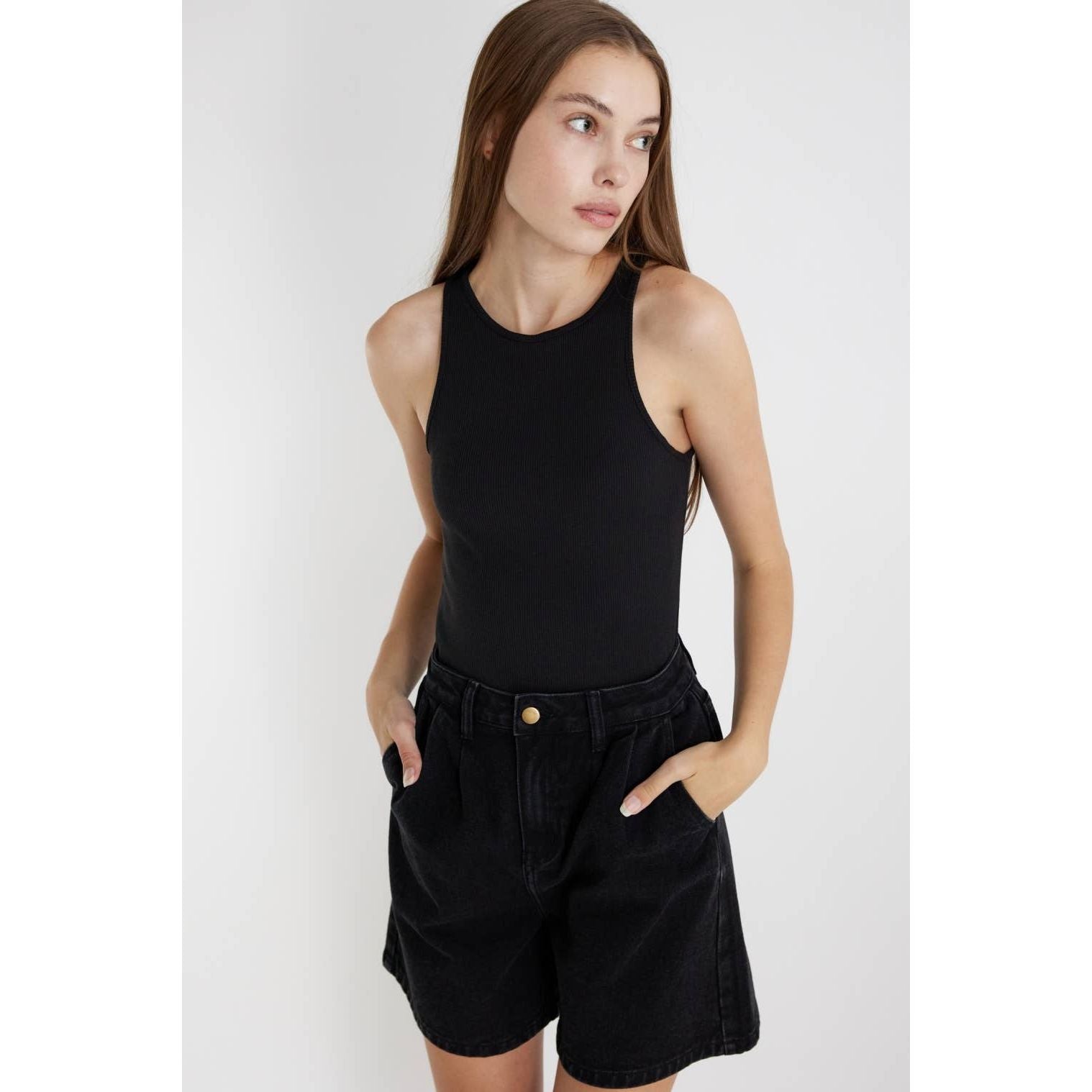 These high-rise jean shorts are cut from a washed cotton fabrication giving it a vintage feel. It's detailed with a high waist and front pleats for added style. The Naomi Shorts will be your new go-to for everyday wear during the warmer days.