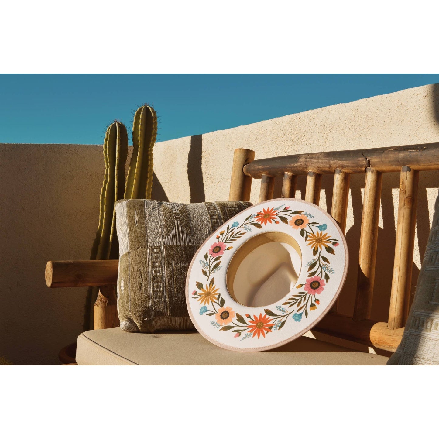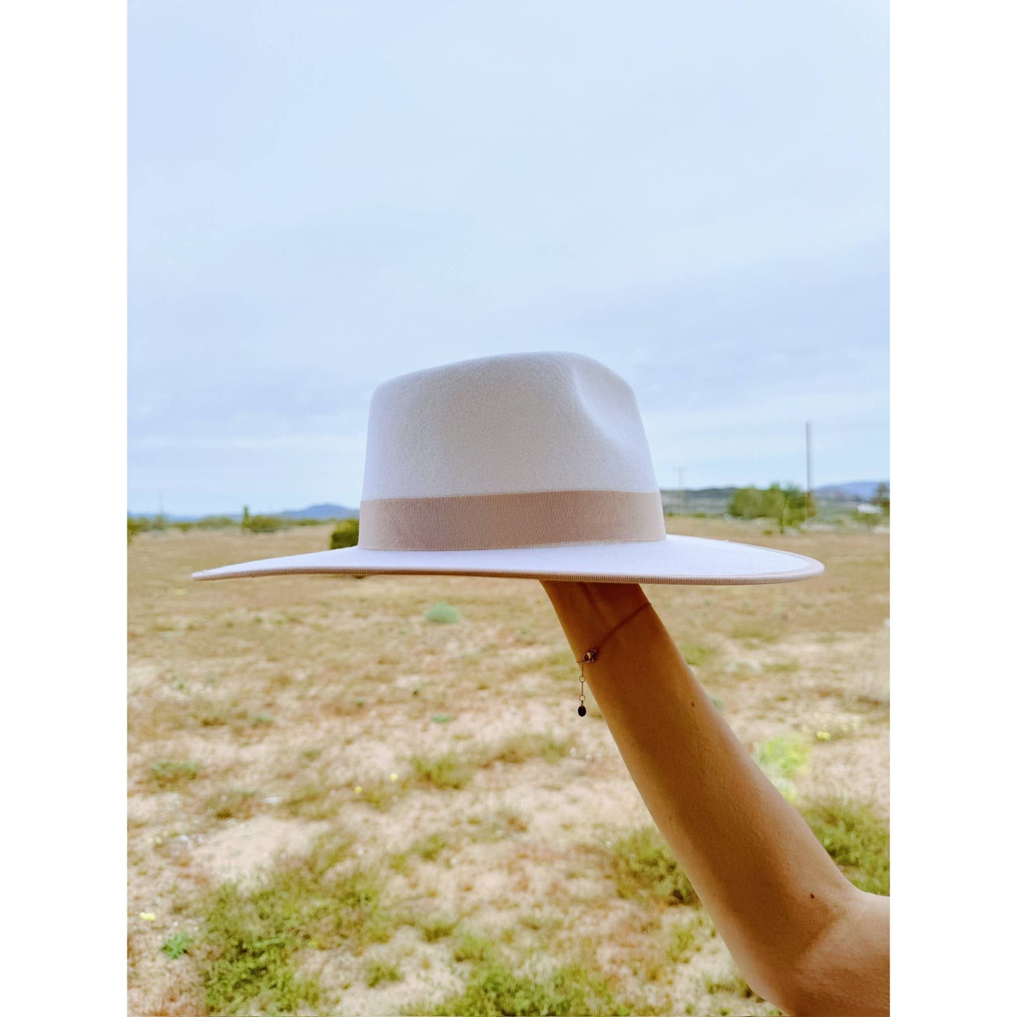 The Wilder is on our beautiful ivory rancher hat. All hats come with an internal adjustable band for customize your fit. Simply flip the inner band out and adjust the inner velcro strap. (see video)