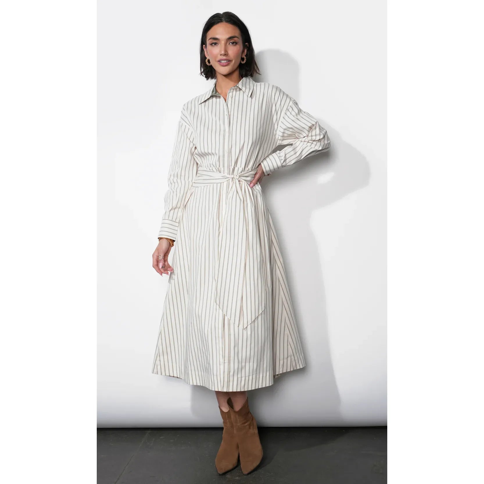 It features the structure of a traditional shirt dress, complete with a collar and likely a button-front closure. The defining feature is the unexpected open back detail, which creates a beautiful element of surprise and elegance.