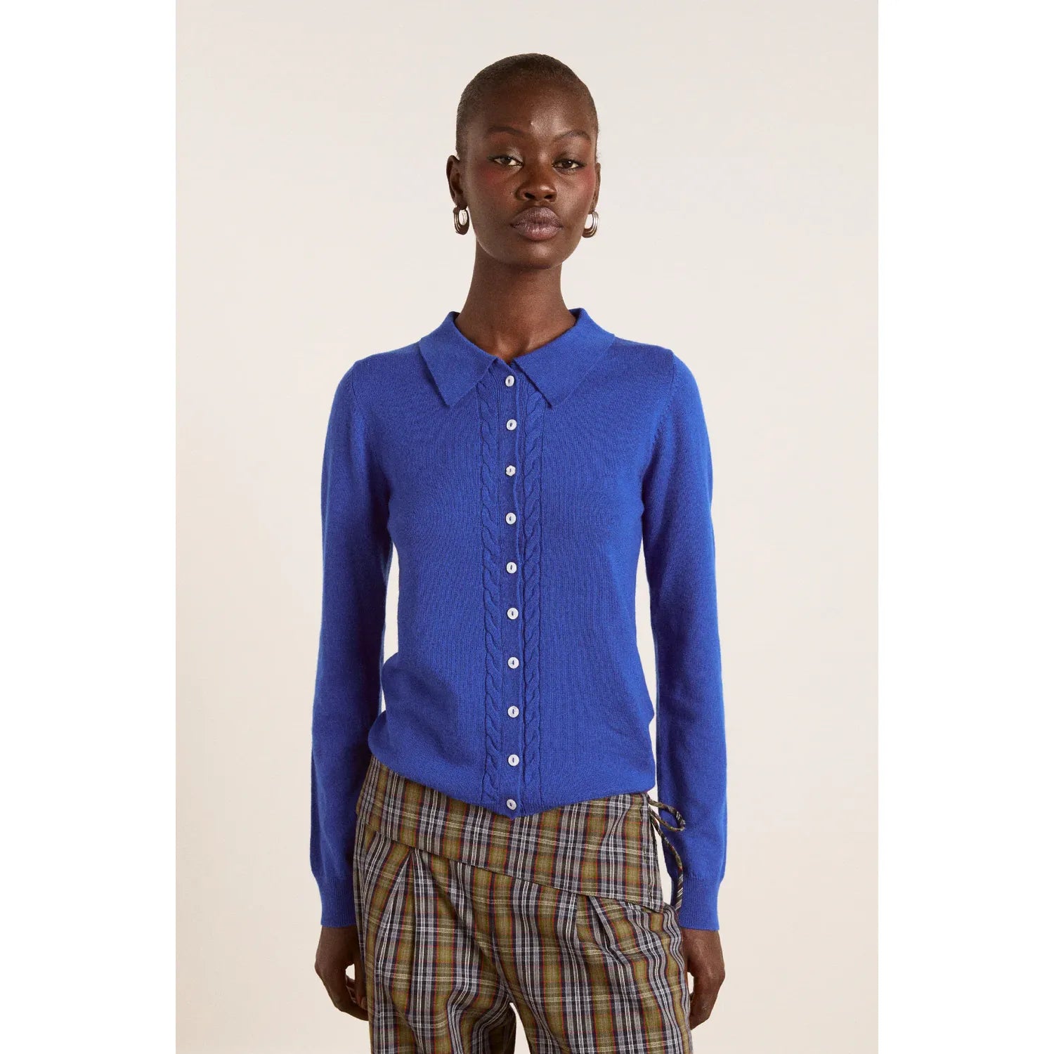 Meet the Voula Wool and Cashmere Blend Cardigan in cobolt blue. Expertly crafted with 88% certified responsible wool standard Wool and 12% from the Good Cashmere Standard®, the Voula is a fine knit featuring a button down placket. Finished with cable detailing down the placket, the Voula is the perfect layer to see you through every season. Select your regular size for a relaxed fit.